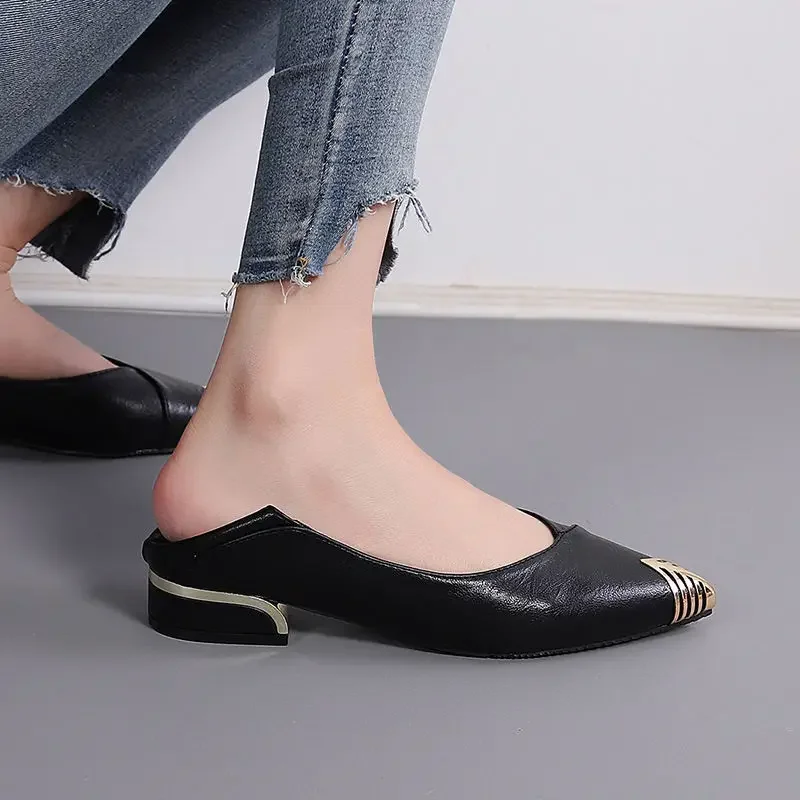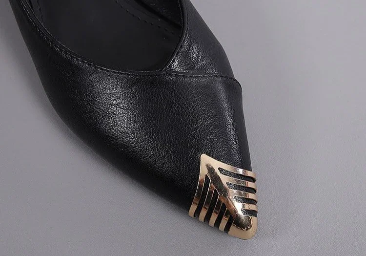 Talon de 2 cm, idéal pour un confort absolu tout au long de la journée. Forme à bout pointu chic et stable, avec un détail signature : un bout doré élégant qui apporte une touche lumineuse subtile.